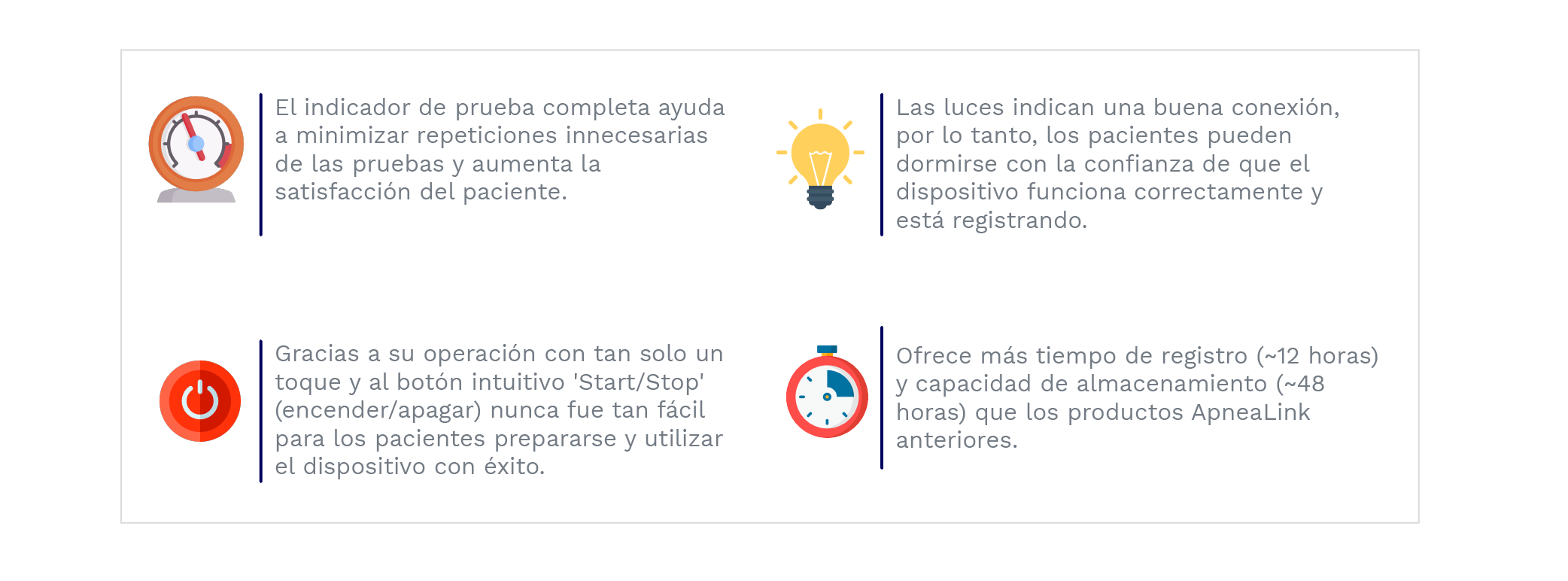 El medico programa el equipo a través del software Airview y el paciente utiliza Apnealink durante la noche en la privacidad de su hogar, es una correa cómoda que se ajusta en el pecho del paciente.