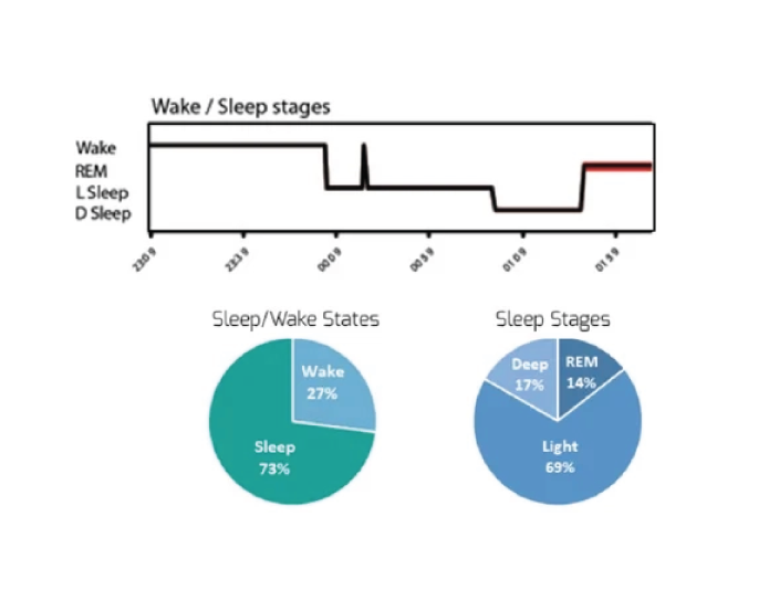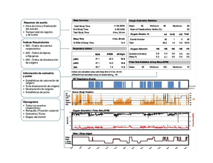 La arquitectura del sueño clínicamente validada de WatchPAT proporciona información sobre la estadificación del sueño, incluida la eficiencia del sueño, la latencia del sueño y la latencia REM4-5. También proporciona el valor agregado de detectar apnea del sueño relacionada con REM con REM u AHI no REM